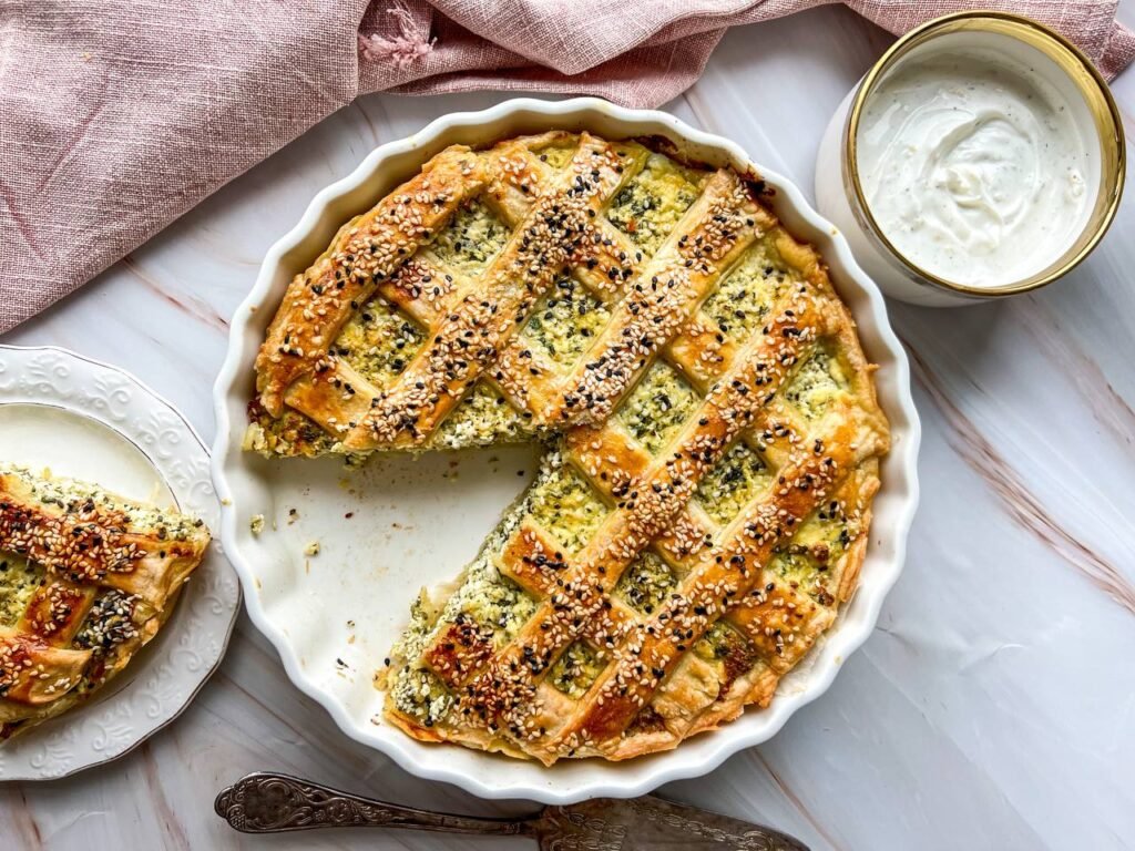 Varškės pyragas su špinatais ir sūriu